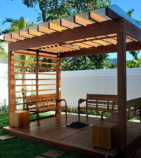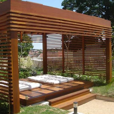 Construção de pergolados, coberturas, vigas e estruturas diversas. A Itaúba oferece estabilidade e um visual sofisticado, trazendo charme e rusticidade ao ambiente.
